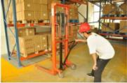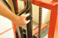第七步:使用操作手柄起升貨叉至規定高度(規定高度參照重型貨架第二層橫梁高度)