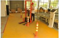 第一步:實訓人員佩戴安全帽到手動堆高車的停放位置。