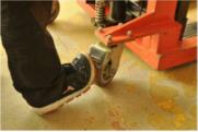 第九步:順時針旋緊控制閥,使用腳踩器起升貨叉至規定高度(規定高度參照重型貨架第二層橫梁高度)。